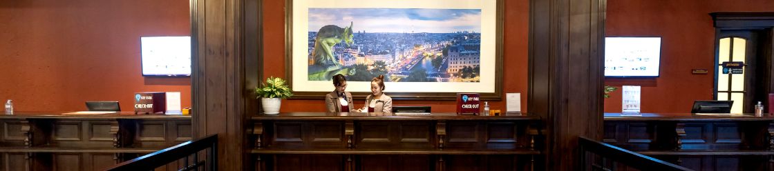 到了飯店要辦理時,最重要的是讓飯店人員了解你的訂房姓名與訂房日期。然後要注意退房的時間,如果有訂餐的話要注意用餐時間。